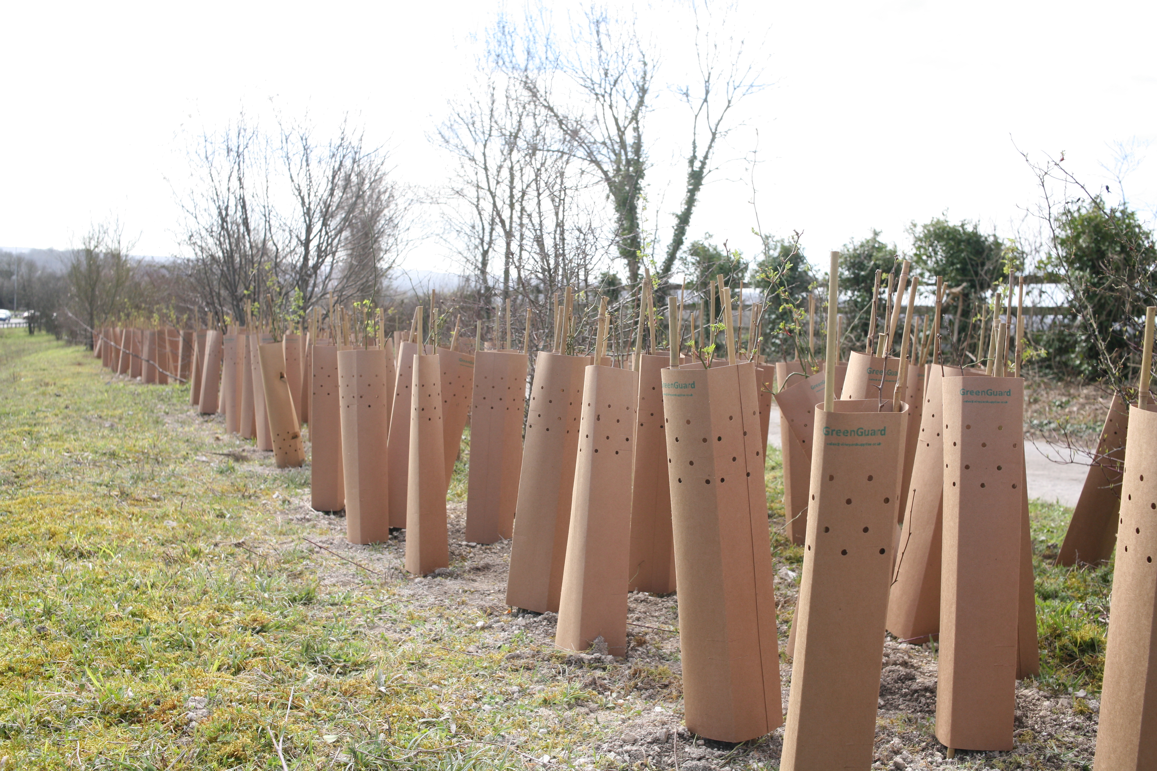 Cardboard tree guards installed on Bluebell Hill